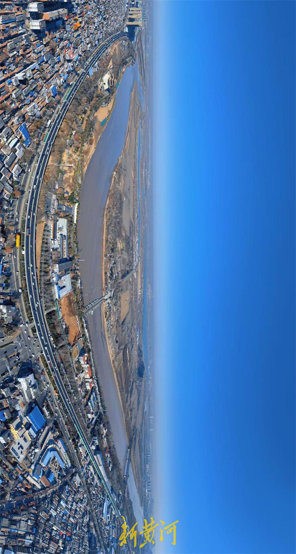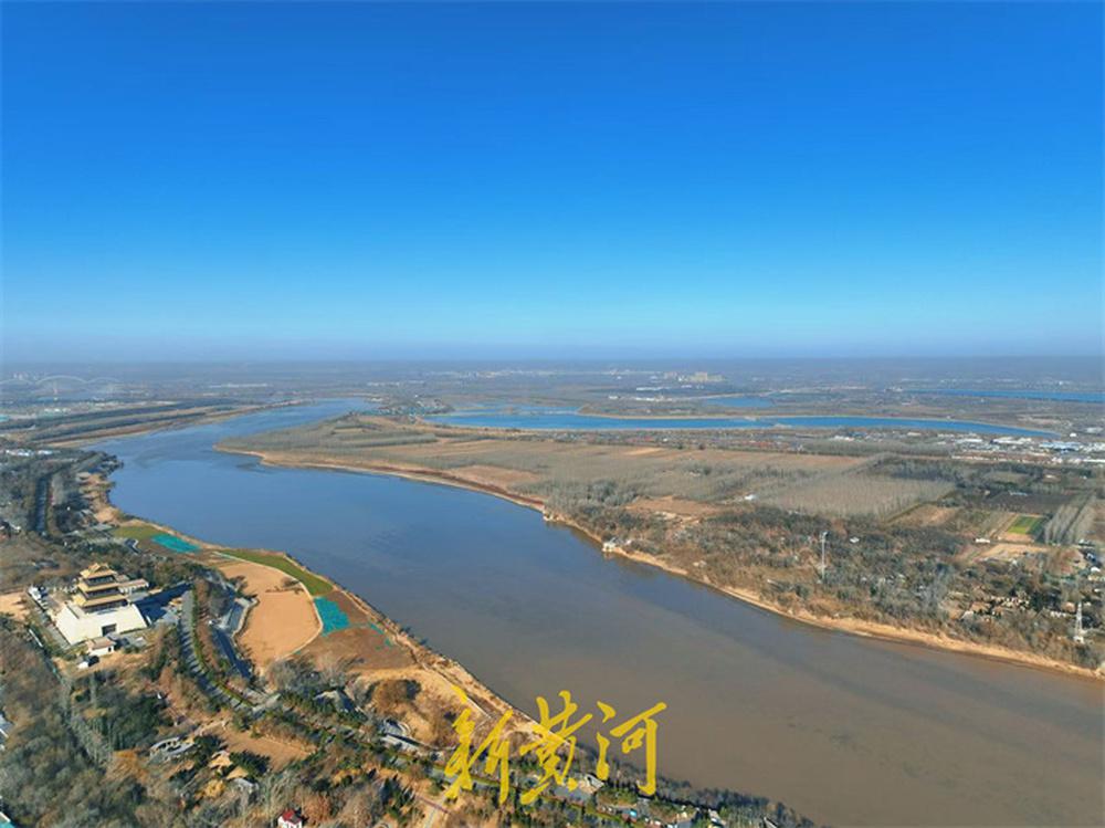 1月2日,“泉城蓝”持续在线,高空俯瞰济南百里黄河风景区,天空湛蓝通透,碧空如洗,奔腾不息的黄河水与蓝天交相辉映,构成一幅绝美的画卷。
