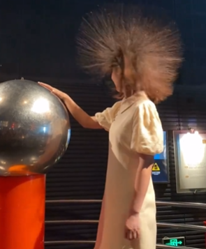 近日,安徽马鞍山。3岁女孩滑滑梯,静电让发型酷到“飞起”。