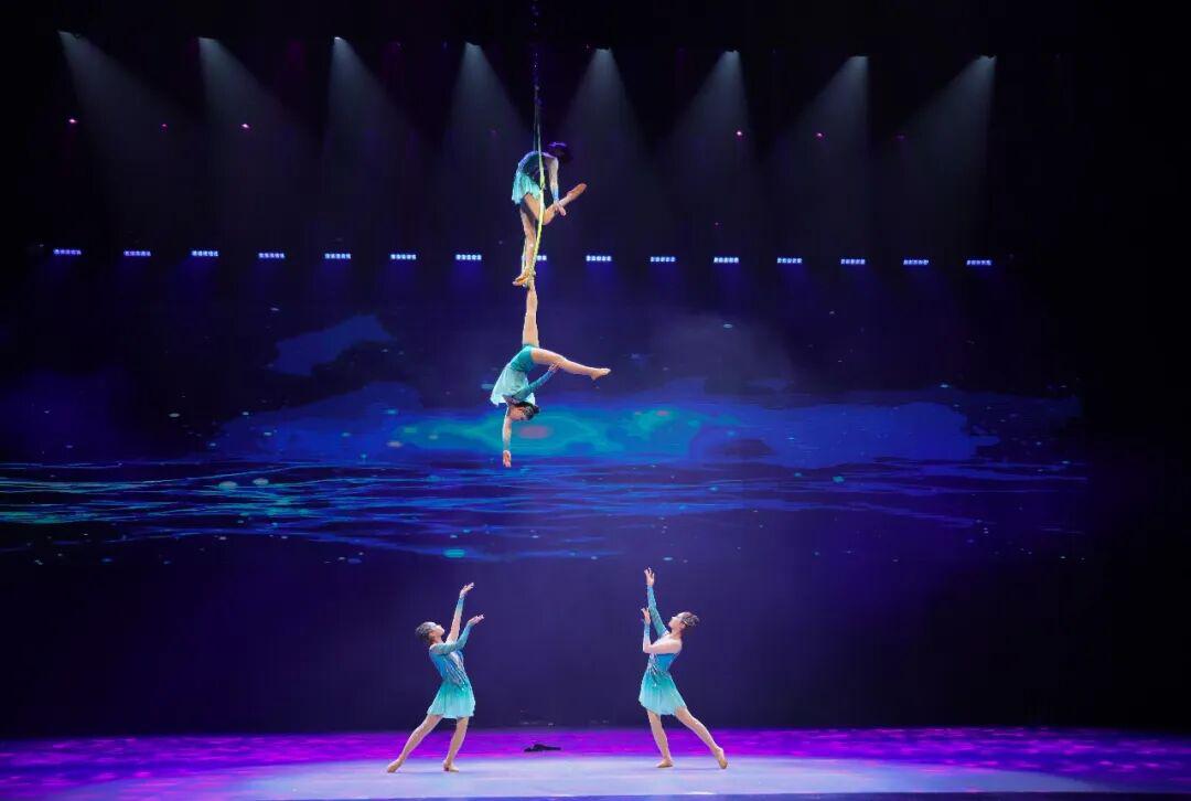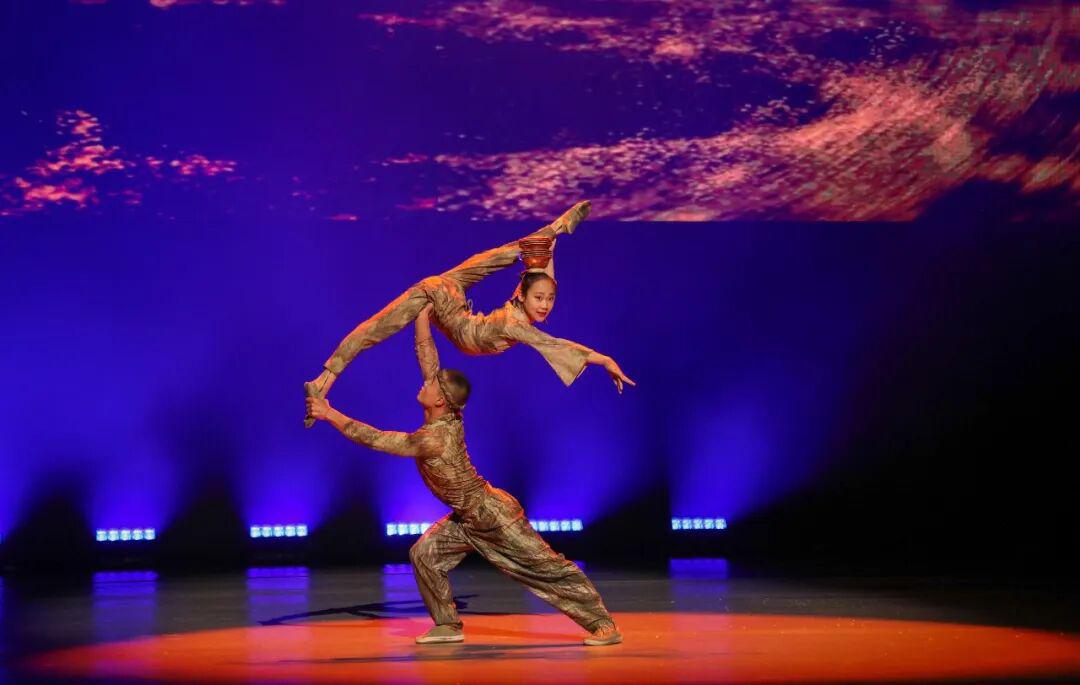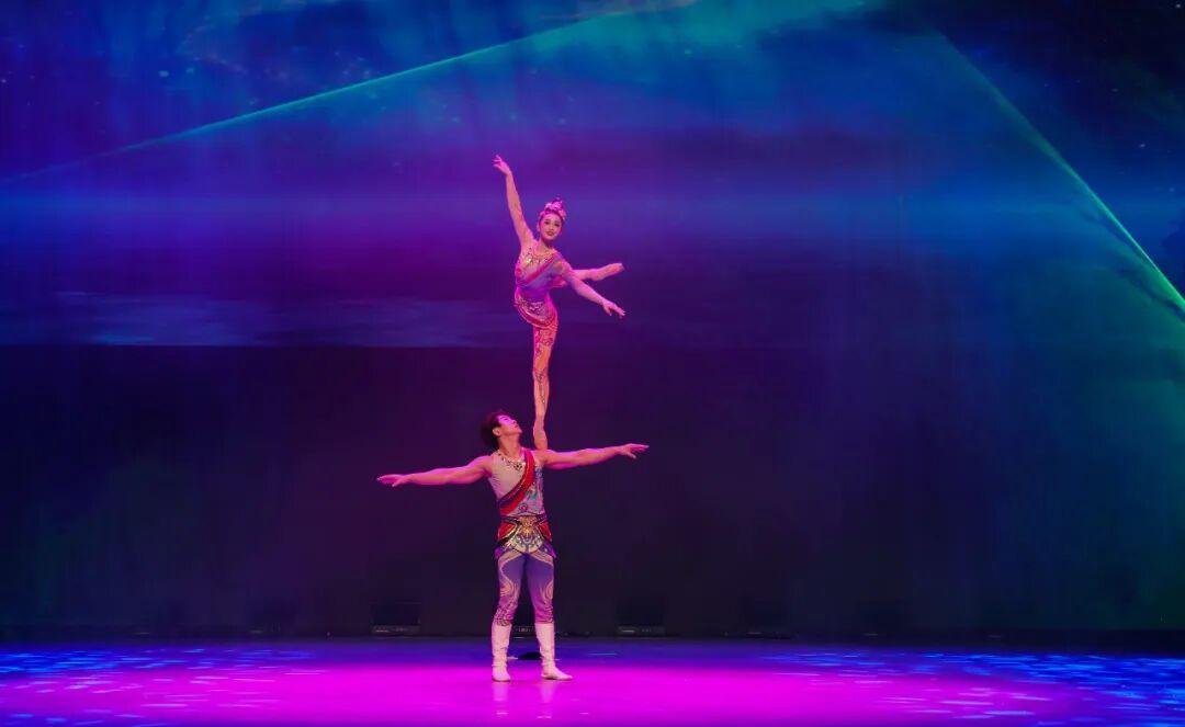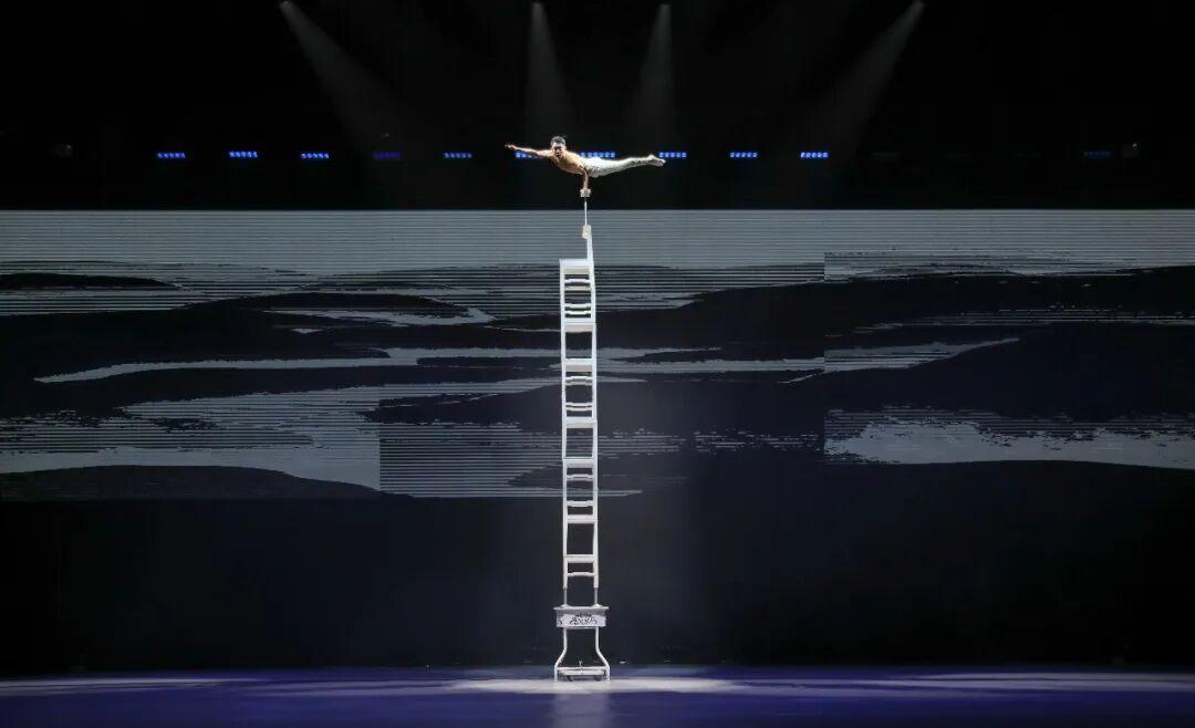 演出尽显中华优秀传统文化之美。《龙跃神州⸺中幡》集“惊险奇美”于一身,融入京剧元素、古典舞与武术的动作特点,腾挪翻转间将古老中幡艺术的雄浑与新时代的昂扬气象徐徐铺展。《梁祝⸺肩上芭蕾》以梁祝为故事基线,女演员在男演员“3厘米见方”的肩上和头上展翅起舞,完成足尖站肩等一系列高难度动作。《俏花旦⸺集体空竹》通过服饰、音乐、动作、身段等京剧元素在节目中的大胆成功运用,文活武演,体现了国粹的大气、典雅、华丽,展现了精雕细琢的京味风情。《大鱼⸺吊环》以高空吊环为载体,结合流行乐曲《大鱼》,演员宛如灵动的鱼儿,轻盈地穿梭于环间,将观众带入充满诗意与浪漫的海洋世界。